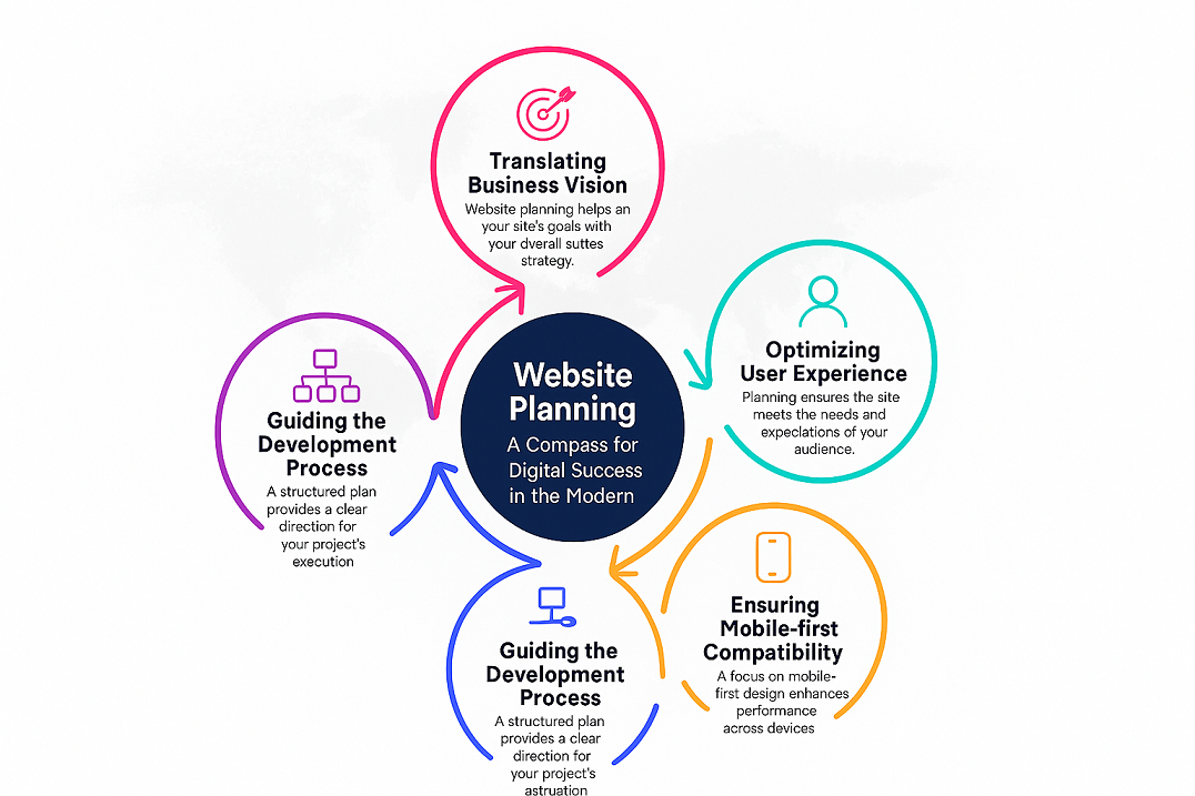 - תכנון קפדני של חוויית המשתמש (UX) ועיצוב ממשק משתמש (UI) יעיל: שלב זה כולל את התכנון הפרטני של מסלולי הגלישה הרצויים באתר עבור סוגי משתמשים שונים, עיצוב מפורט של פריסת העמודים השונים (Wireframes), והגדרת האינטראקציות השונות בין המשתמש למערכת שיניעו את המשתמשים לבצע פעולות רצויות (Call to Action - CTA) ולהשיג את מטרות האתר. חוויית משתמש טובה ואינטואיטיבית מגדילה את שביעות הרצון של הגולשים, משפרת את הסיכוי להמרות (Conversion Rate) ולהשגת היעדים העסקיים שהוגדרו.